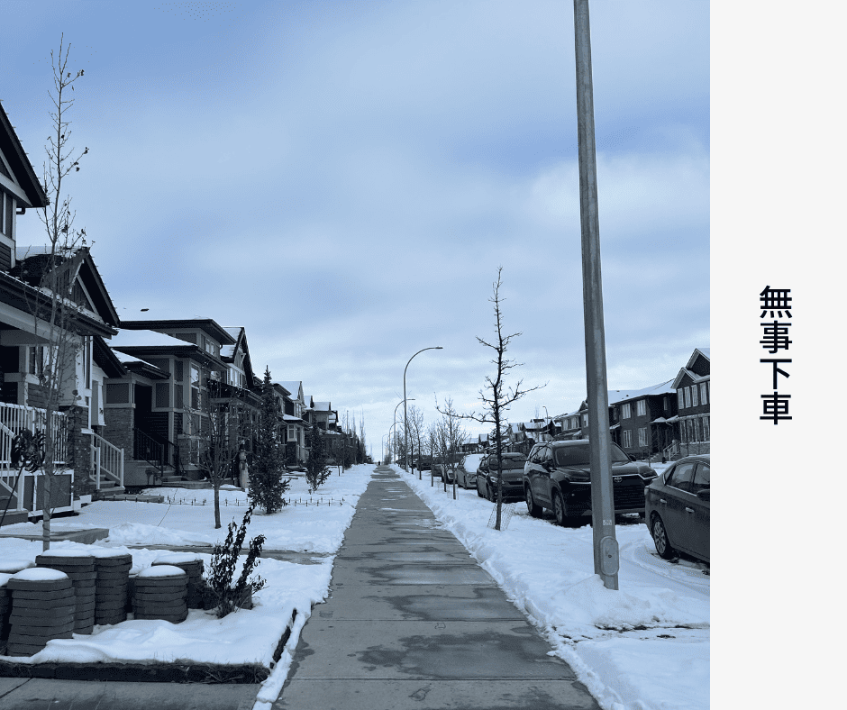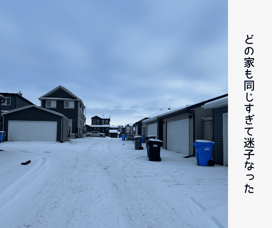 バス停から歩いて5分ほどで家です!カナダの家は場所によりますが私のホームステイ先周辺は一つの区画に同じ見た目の家がずらーっと並んでいるので迷路のようです笑