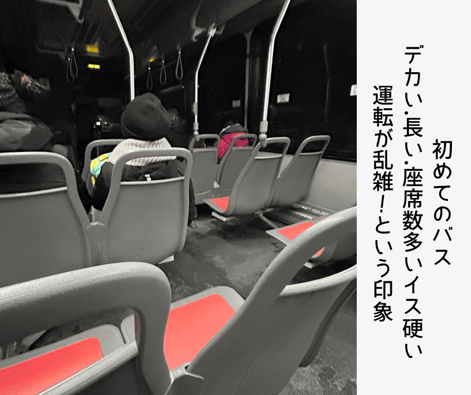 運転は結構荒めで立ってる人は大変そうな印象。降りるときみんな大きな声で「THANK YOU!」と言っていてすごい!と思いました。