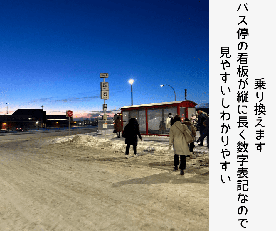 バスには数字があり、バス停には大きく数字と小さく行き先が記載されているのでとても単純で分かりやすい!英語に慣れてない私からしたらありがたい!!