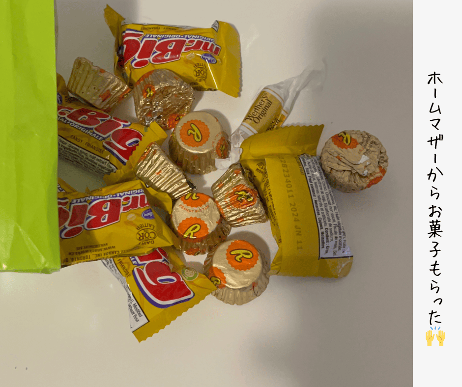 ホームマザーからはお菓子の詰め合わせをもらいました!