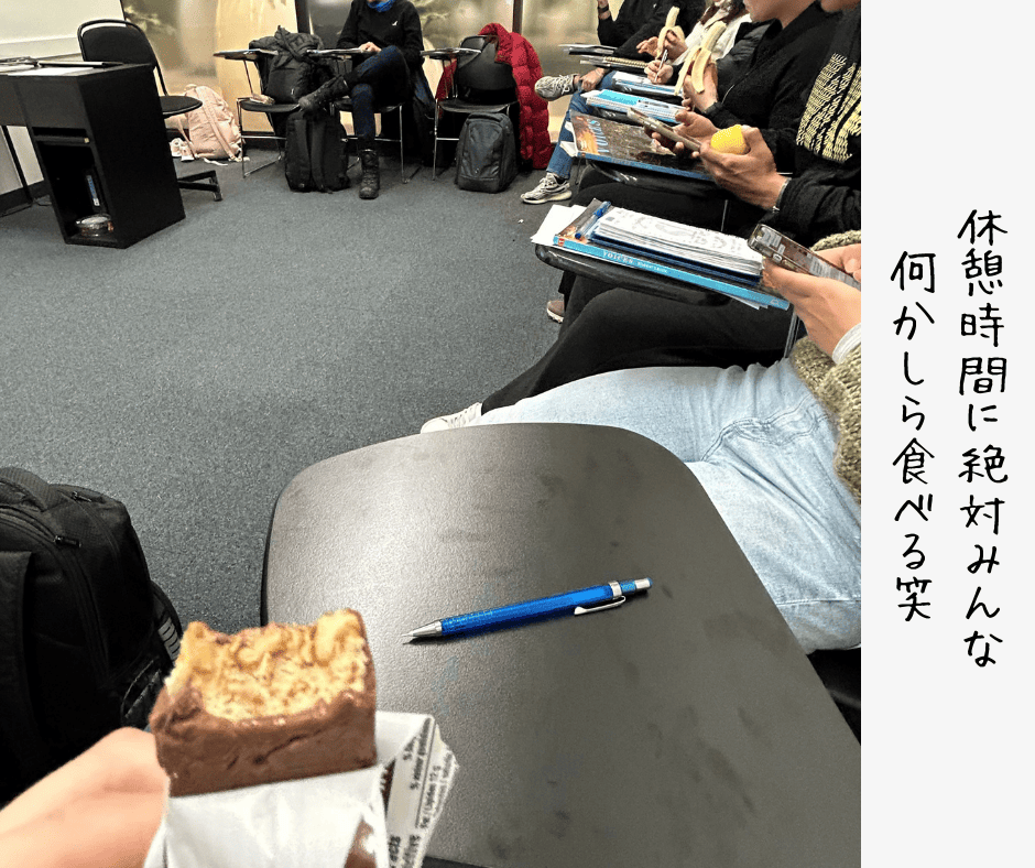 学校も、休憩時間にはお菓子をむさぼる程慣れました。