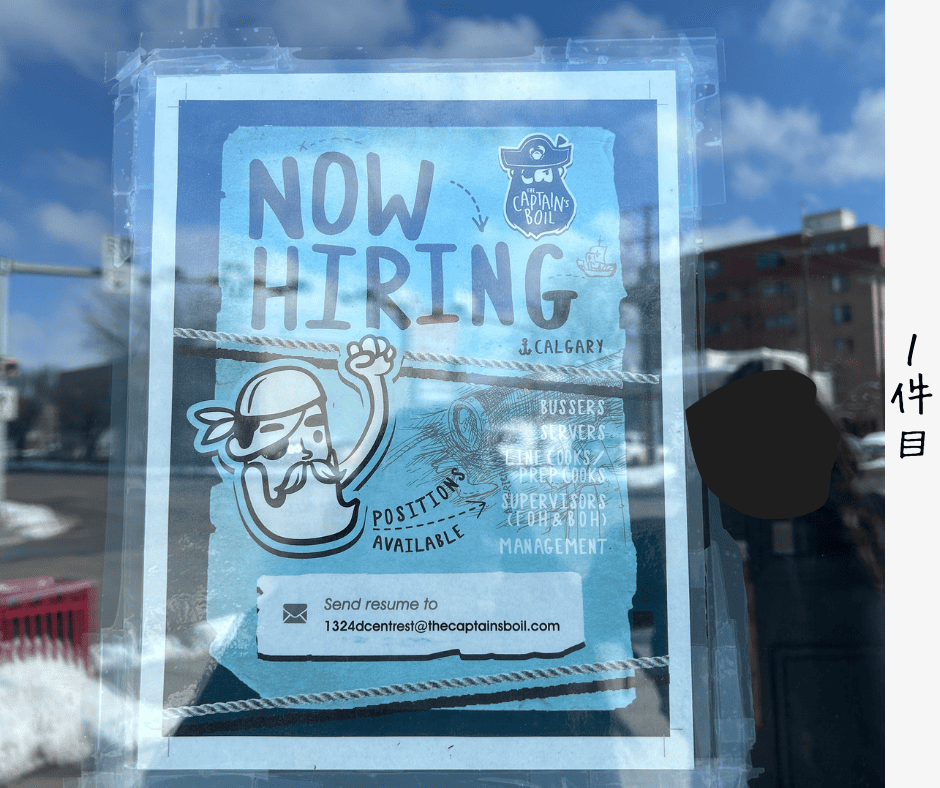 ダウンタウンに限らずカルガリー全体で探したら以外とどこも募集してるし、