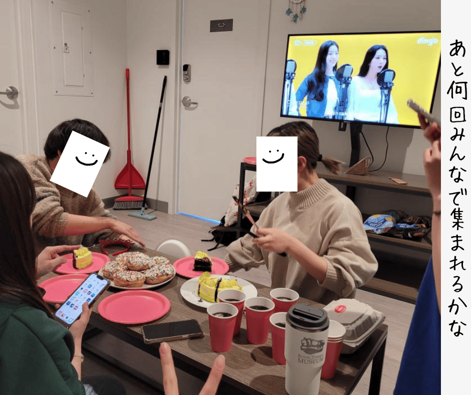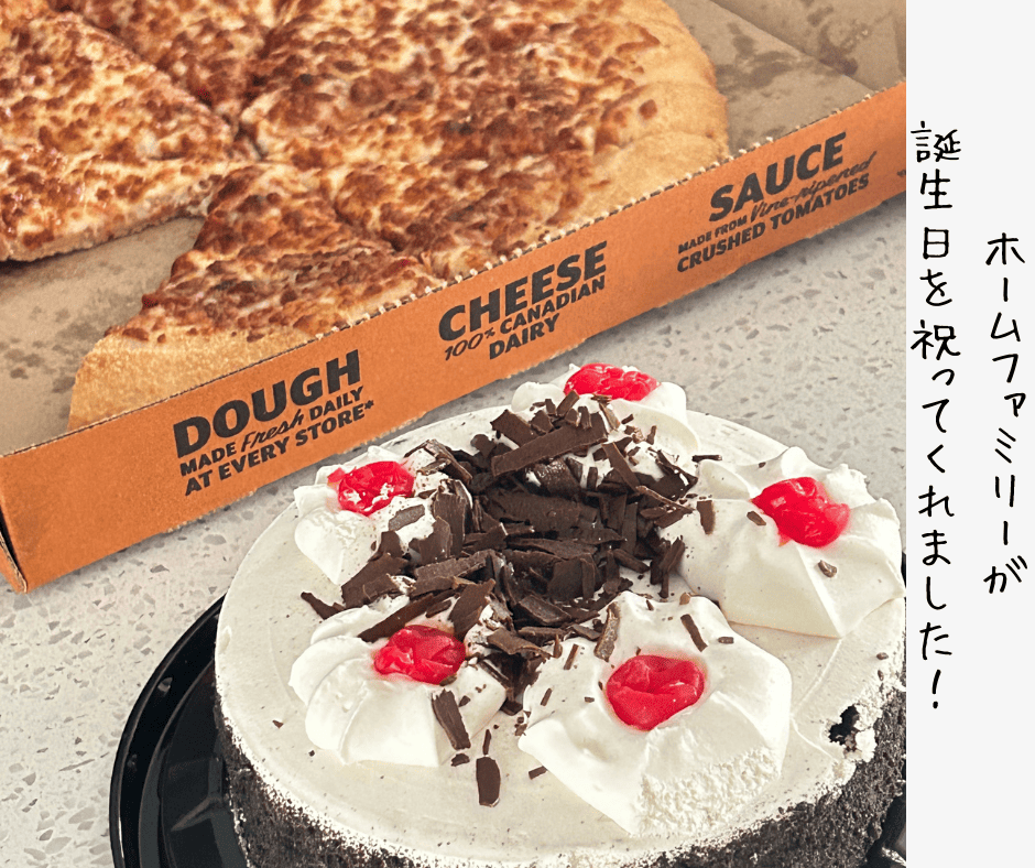 ホームファミリーがピザとケーキでお祝いしてくれました!