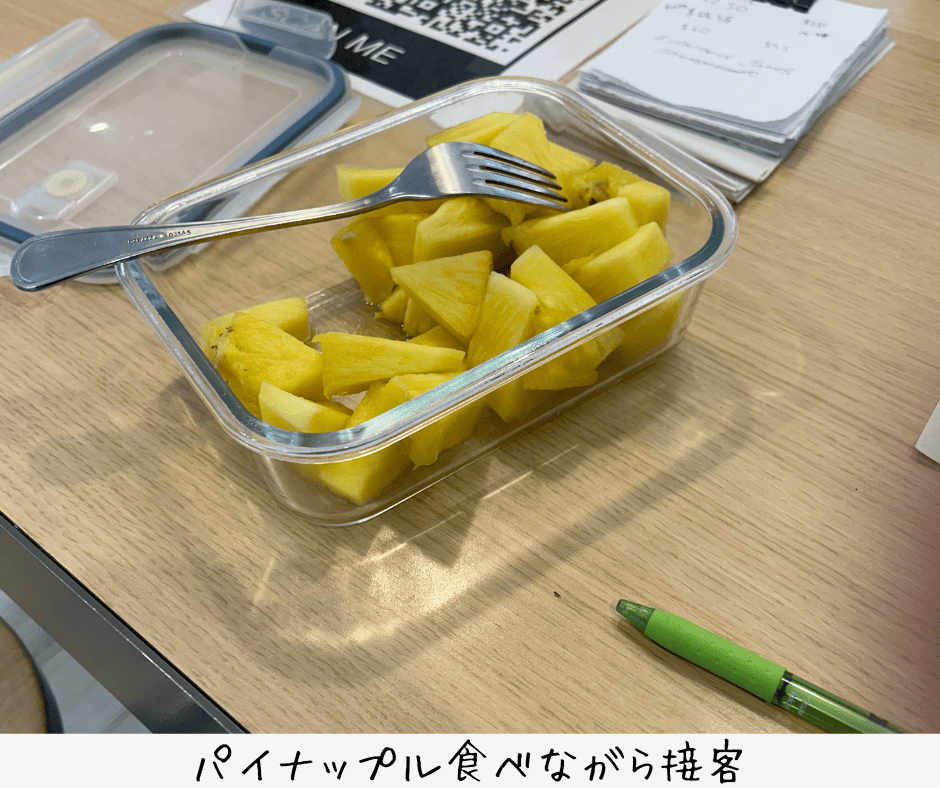接客してくれたお姉さんが終始パイナップルを食べていたからです。