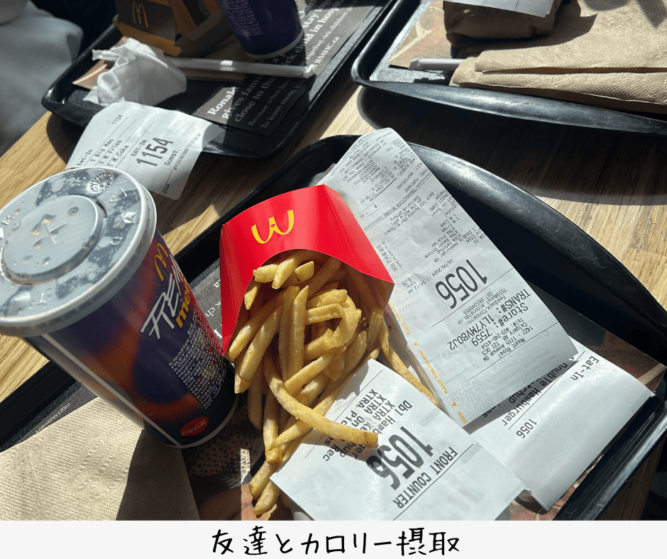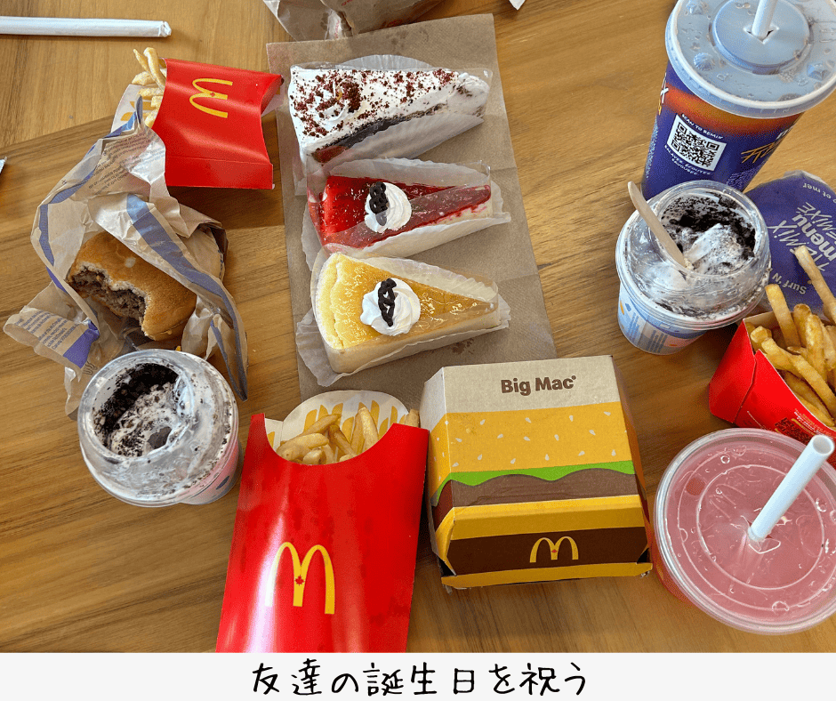 いったんマクドナルドで糖分補給し心を落ち着かせ、友達の元へケーキをもって向かいます。