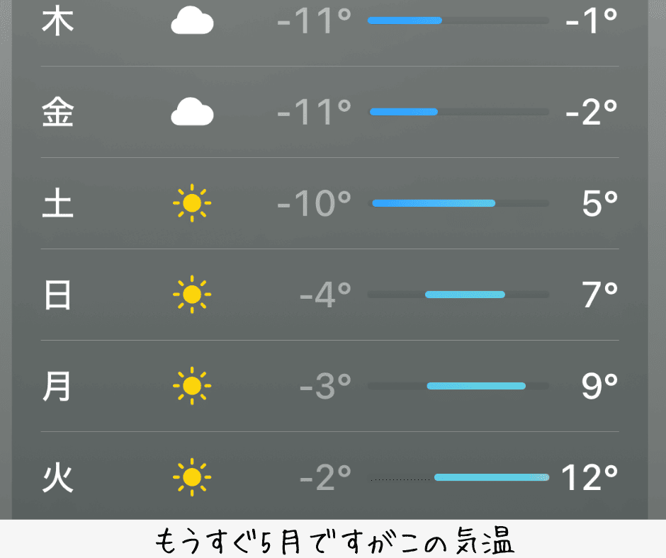まず気温はまだまだマイナスです笑