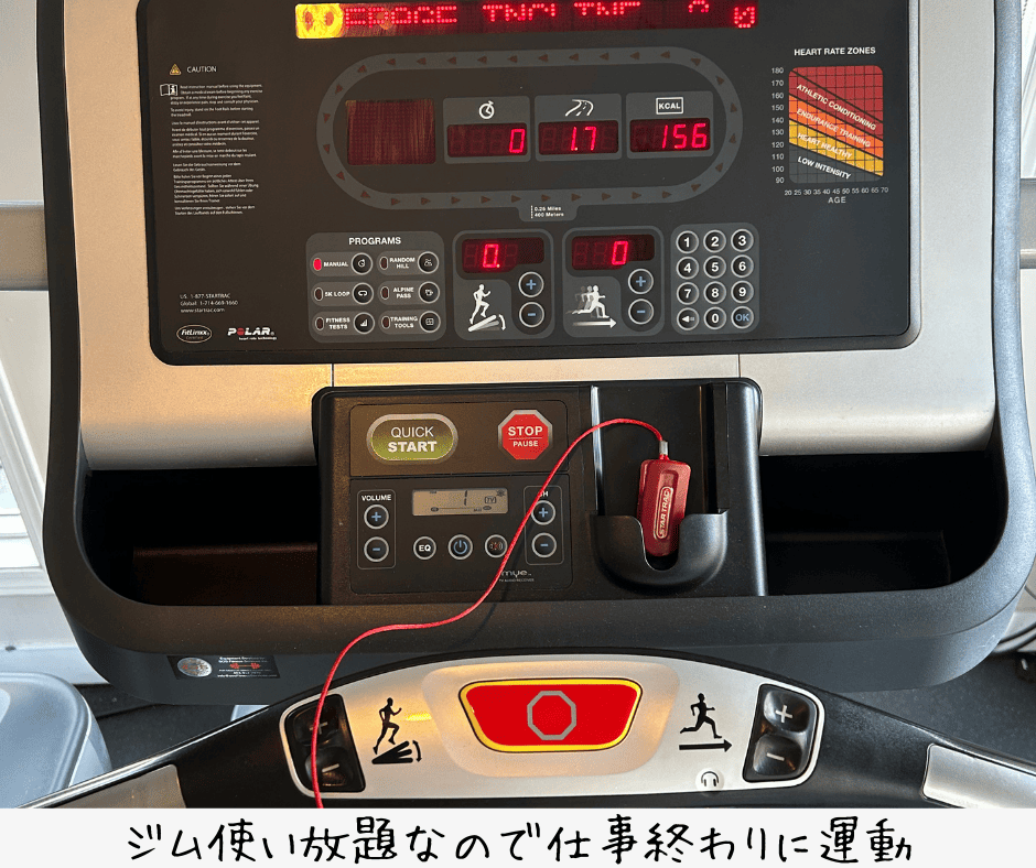 仕事終わりはホテルのジムで有酸素運動