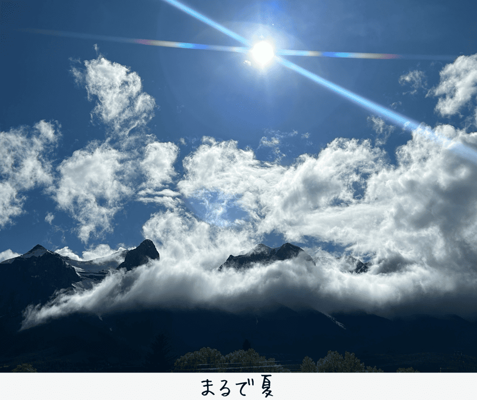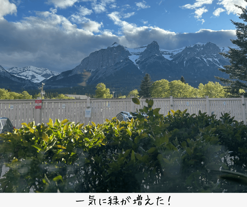 5月下旬のキャンモアは、暖かくて日ざしが強く、雨が降るととっても寒いです。