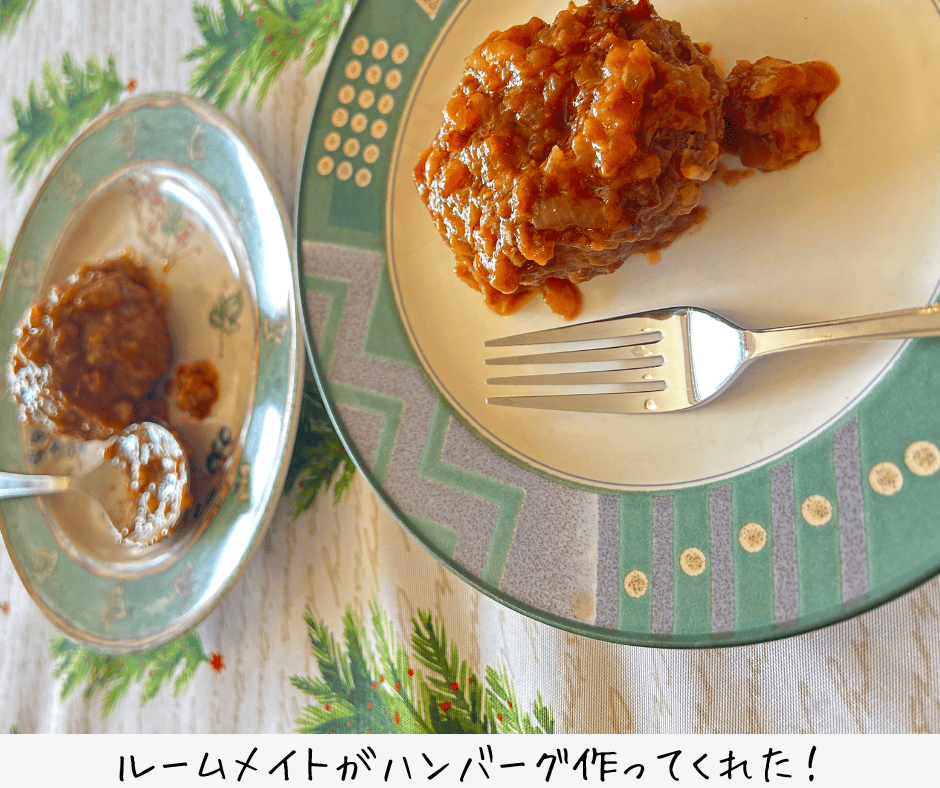 別日には日本人のルームメイトがハンバーグ作ってくれました!嬉しい♡