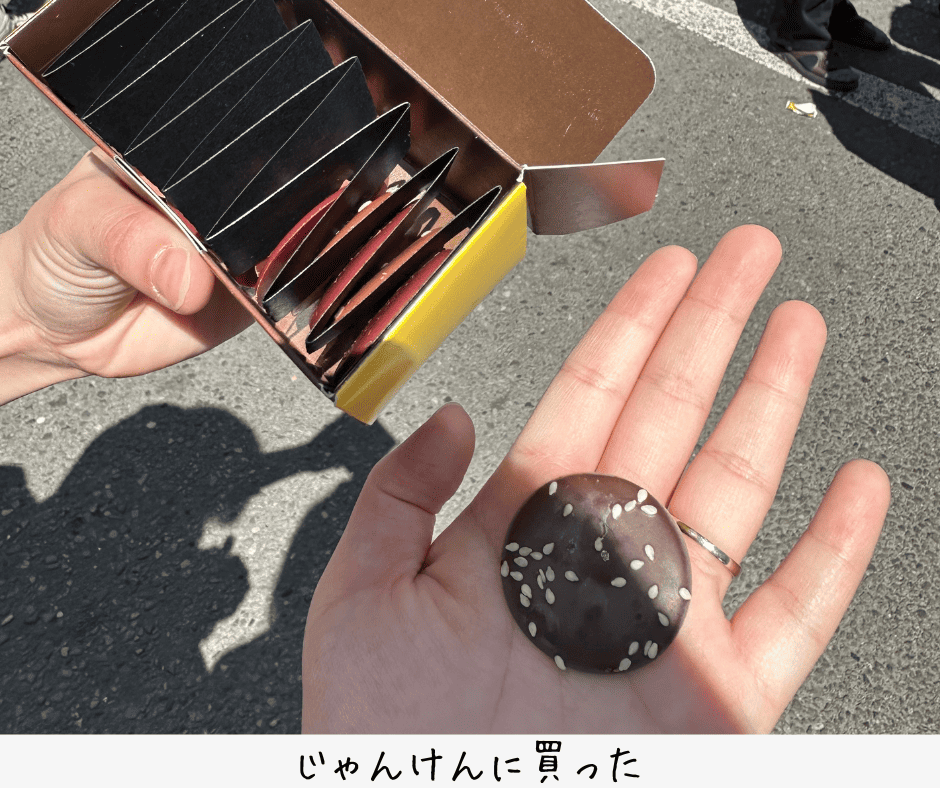 この黄色いことじゃんけんをして、勝つとお菓子がもらえます!