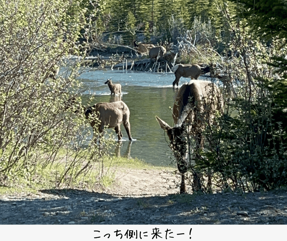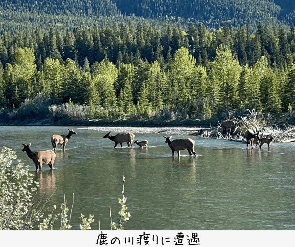 野生の鹿の川渡りも見れてラッキー!