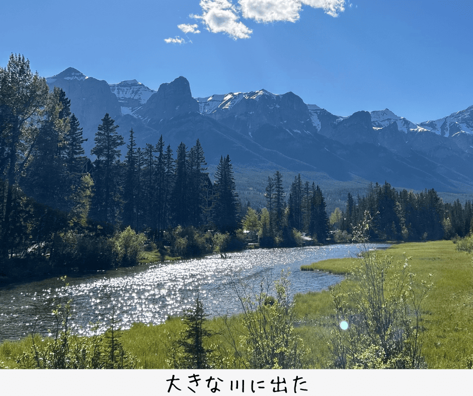 公園を抜け、カヤックなどができる大きな川にたどり着きました。